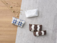 桐生織ペンケースのデザインは、柔らかな曲線が特長の「ラウンドブラウン」、凹凸感のある肌触りの「ワッフルホワイト」、3色を組み合わせたタータンチェック柄の「タータンブルー」の3種。