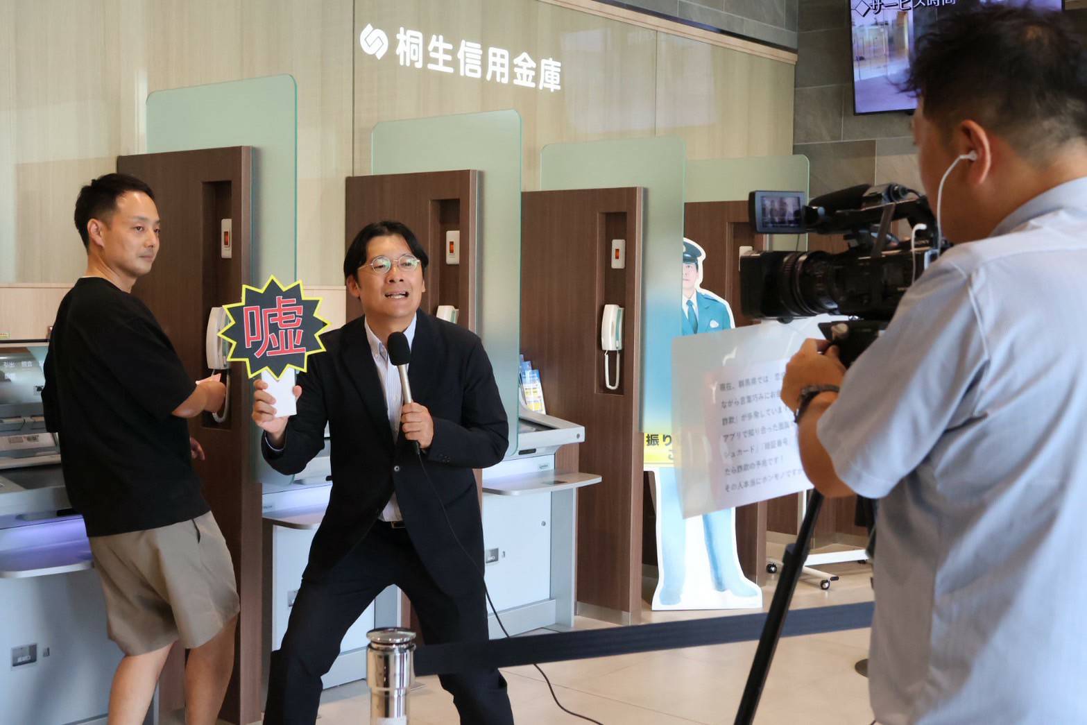 若者の間にも広がる特殊詐欺被害を未然に防ごうと、桐生信用金庫(津久井真澄 理事長)は太田市浜町のきりしん太田スクエアで注意喚起を呼びかけるオリジナルCMを撮影した。