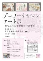 太田市を拠点に活動するコミュニティーサークル「デコリーナサロン」(大人の習い事教室・芸術サロン)は、地域活性化の一環として創作活動の成果を発表する「デコリーナサロンアート展~あなたらしさを見つけませう~」を開く。会期は9月14日(日)と15日(月・祝)、会場は太田市 駅なか文化館(太田市東本町16-4)。入場無料。