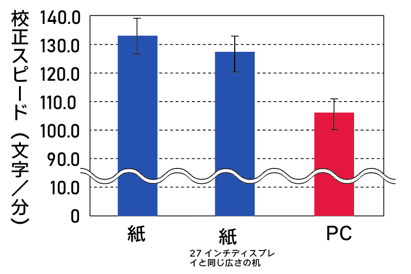 結果は、紙での作業が最も速く、27インチの広さの机での紙作業がそれに続いた。この2つの間に大きな差はなかったが、パソコンと紙では顕著な違いが表れた。紙はパソコンに比べ25.5%速く、エラー検出率も10.7%高かったという。柴田教授は「25%の差というのは、1時間の作業で15分の違いになる」と説明する。