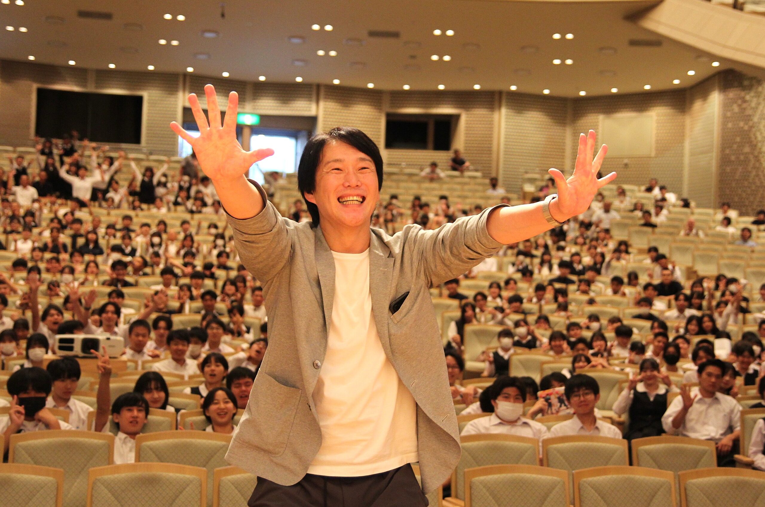 講師を務めたのは、非認知能力育成に関する研修・講演活動を行い、TBSドラマ「御上先生」の教育監修も担当したIPU環太平洋大学特命教授の中山芳一氏。大ホールでの講演でありながら、生徒を3人1組のペアにし、数多くの問いを投げかけて考えさせるスタイルで、中山氏も自らステージを降り、客席の生徒と積極的に対話を重ねた。