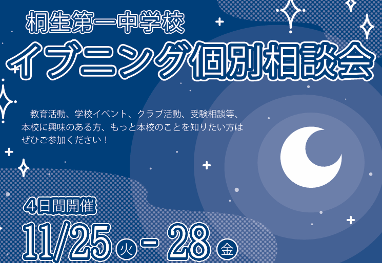 「学校の雰囲気を知りたい方に」桐生大学附属中がイブニング個別相談会 11月25〜28日開催