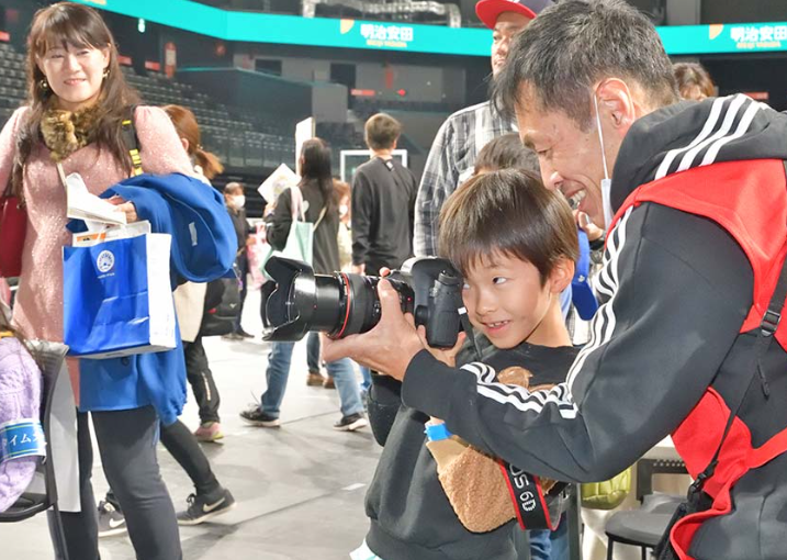 体験した館林市の小学3年生は「カメラで写真を撮るのは初めて」と興味津々の様子で参加。記者からインタビューを受ける父の姿を撮影しながら、「(お父さんの姿は)かっこいい。将来は(建設業を営む父と同じ)大工さんになりたい」と尊敬のまなざしを向けていた。