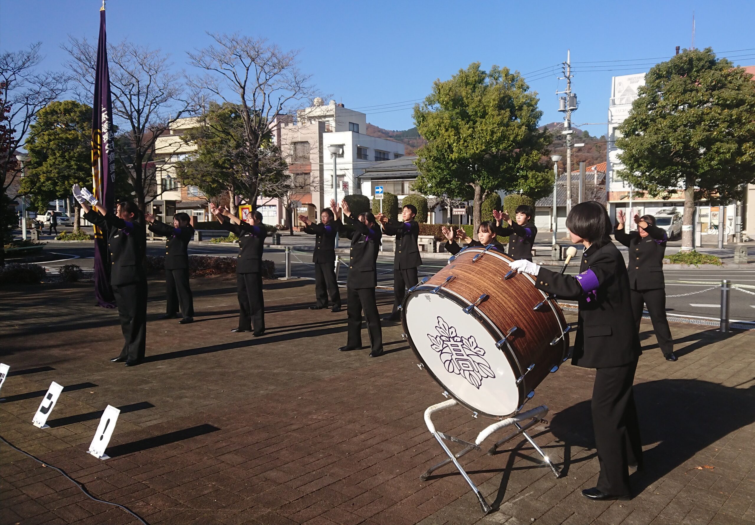 黒の学ラン姿で登場した県立桐生高校応援団15名は、伝統の応援歌「必勝の拍手」や「野球応援メドレー」「ゲンゲロゲンのゲン」など力強い演舞を披露。同校2年生の井田玲奈団長は「勝ったぞ、勝ったぞ桐生」と叫び、「桐生を盛り上げるため応援し続けます」と来場者たちにエールを送った。団員たちは期末テストの忙しい時期にも関わらず、出演を快諾したという。