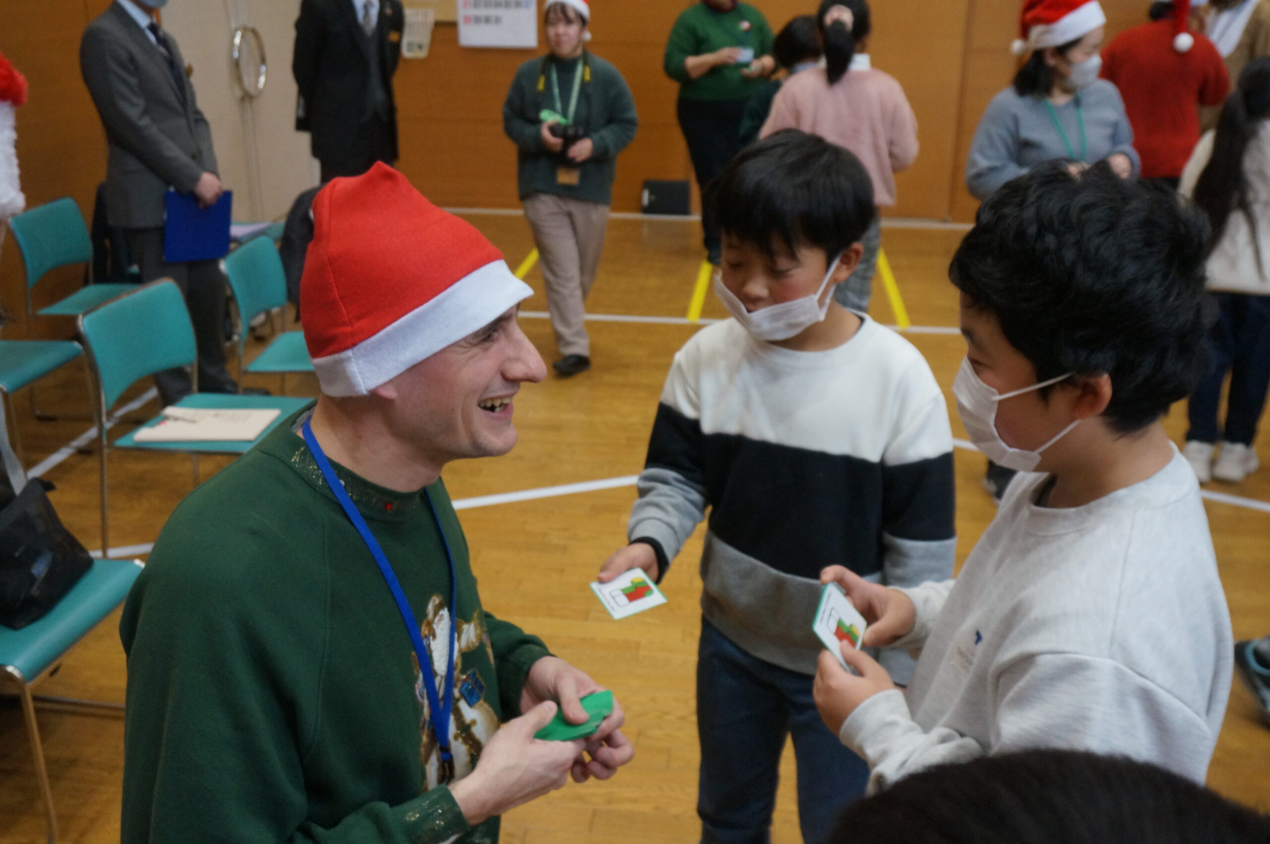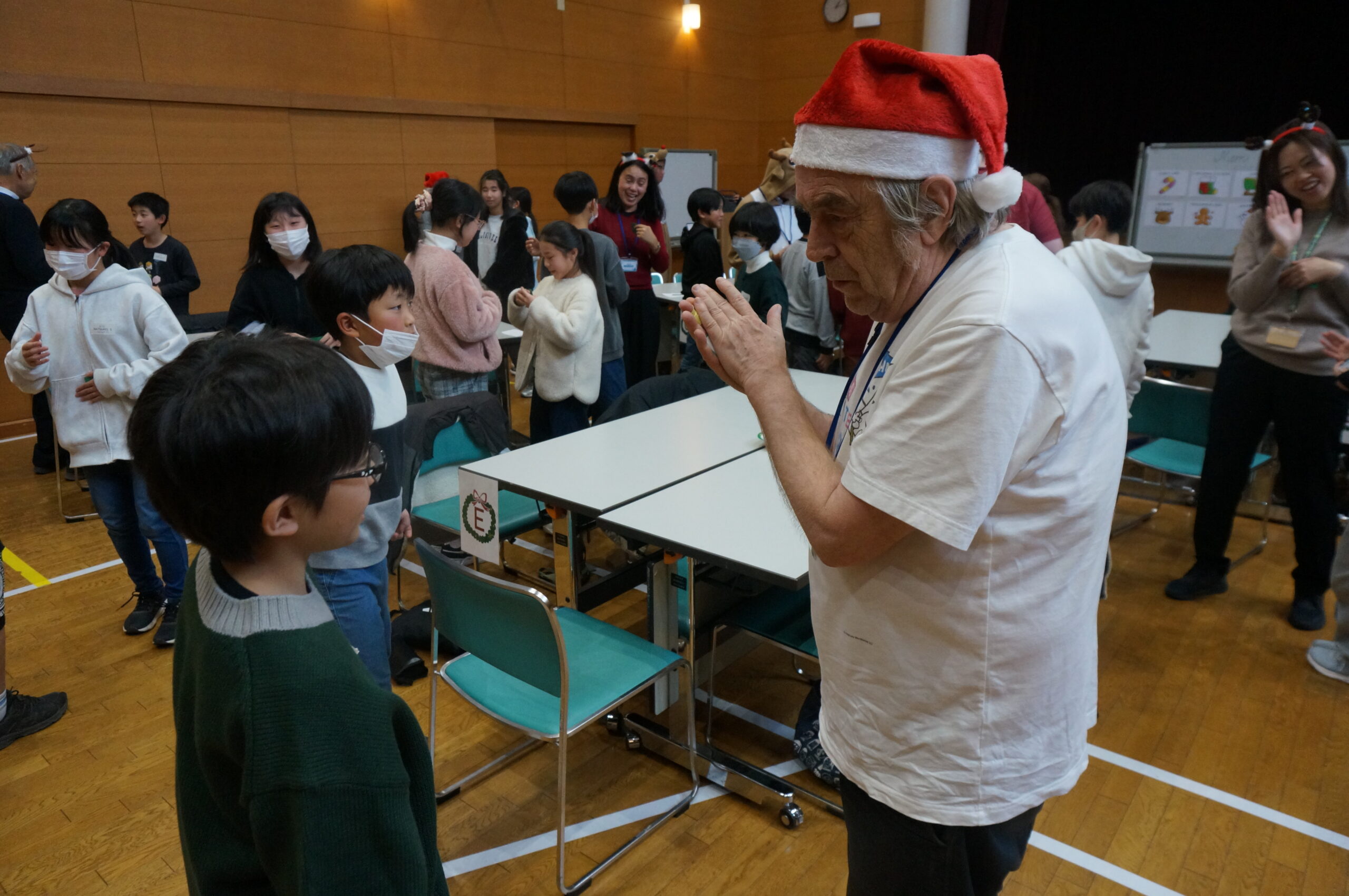 同イベントは今年で4回目。市内の小学生31人が参加し、ALTと市教委スタッフの進行のもと、クリスマスをテーマに、ゲームやクイズなどさまざまな英語活動を楽しんだ。