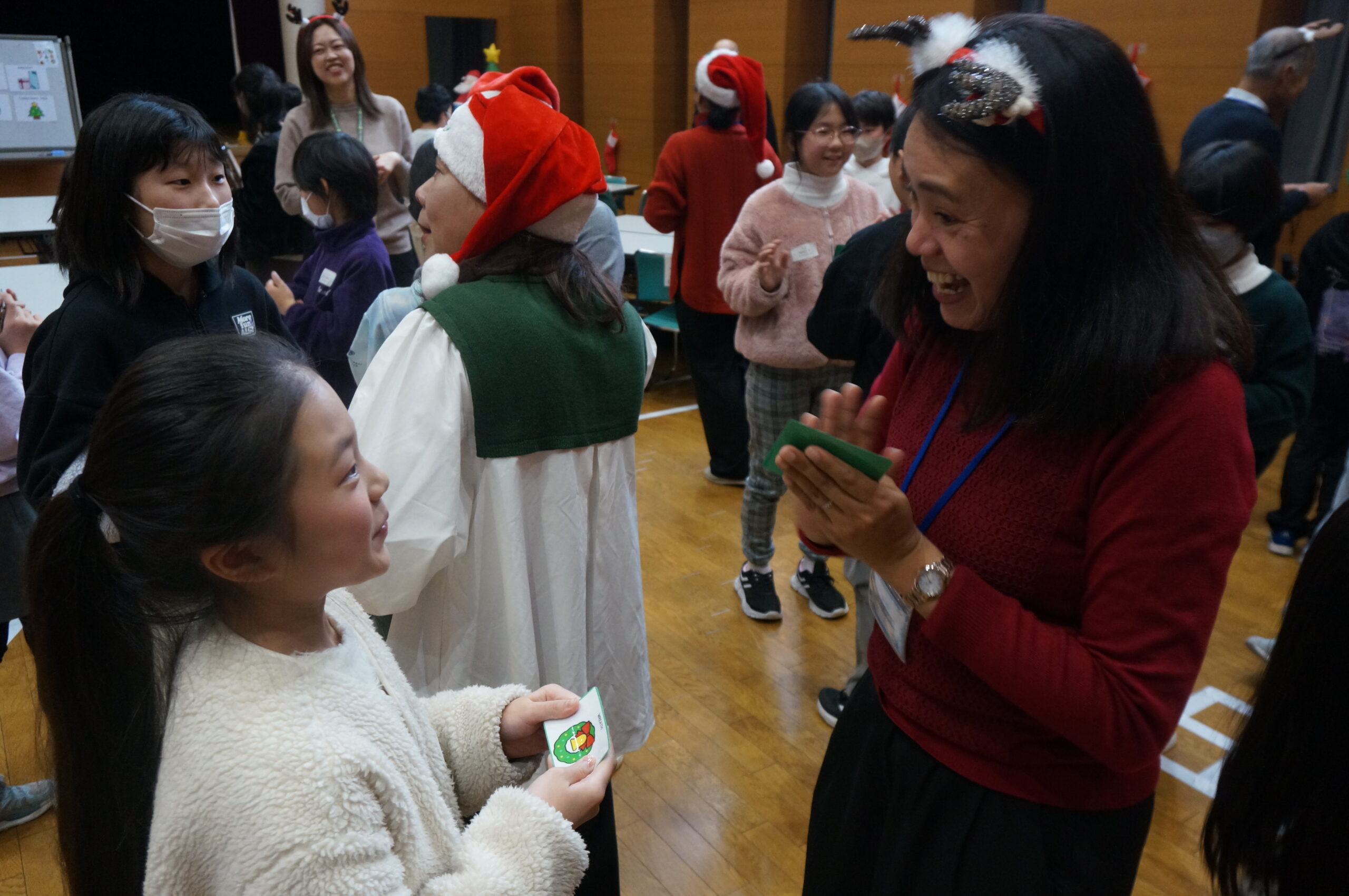 クリスマスにちなんだ単語カードを使ったビンゴ大会は大盛り上がりで、「リーチ!」「ビンゴ!」の声が会場に飛び交った。