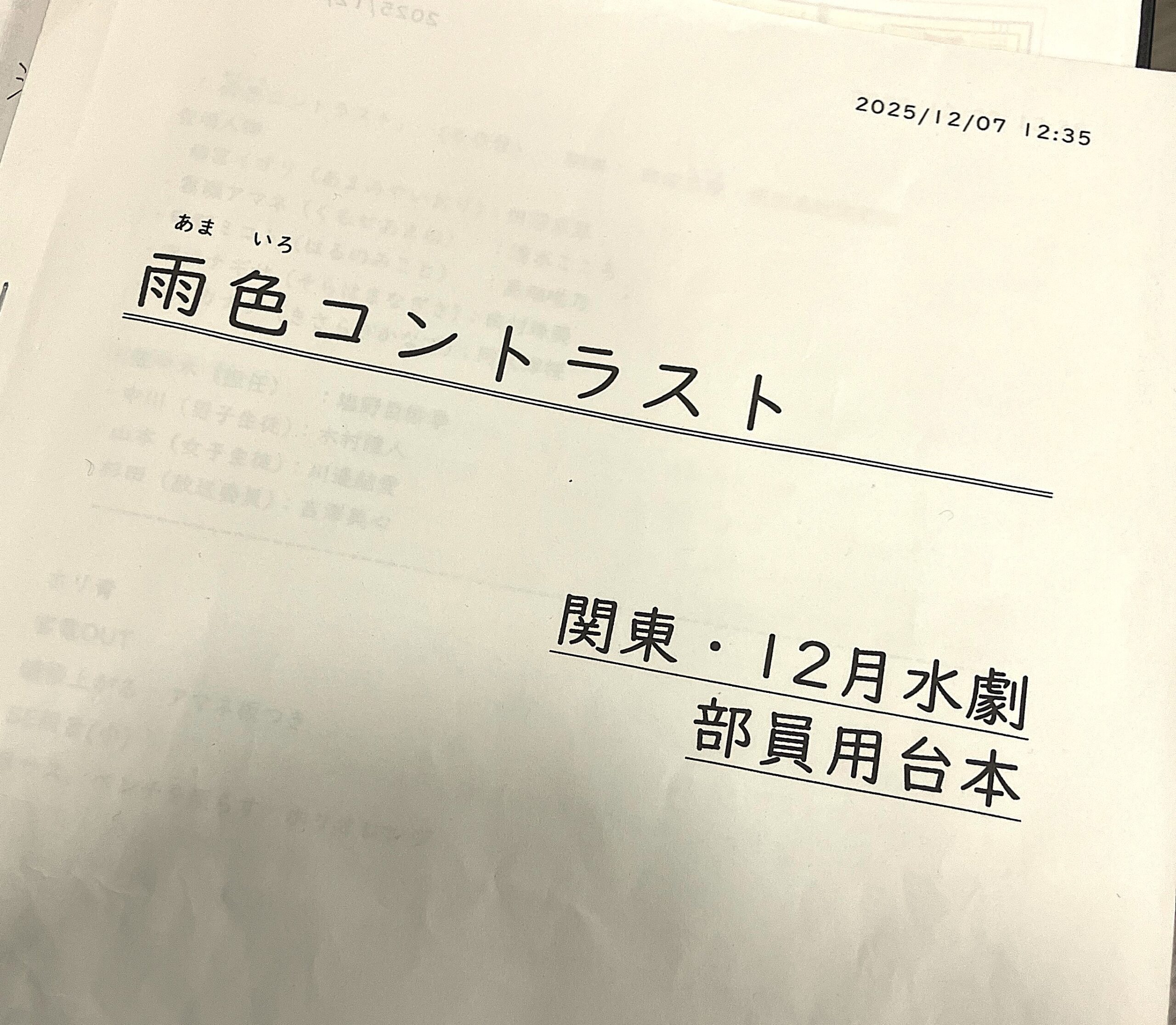 受賞作は、部員が書いた創作脚本「雨色コントラスト」。同性の女子同士の恋愛をテーマに、周囲の視線や偏見に悩む心の葛藤を描いた作品で、「人それぞれの“普通”を認め合うことの大切さ」をメッセージとしている。幼なじみの少女2人の関係を軸に、好きという気持ちと社会の目の間で揺れる心情を丁寧に表現した。LGBTQやダイバーシティなど現代社会のテーマを高校生の目線で深く掘り下げた内容だ。