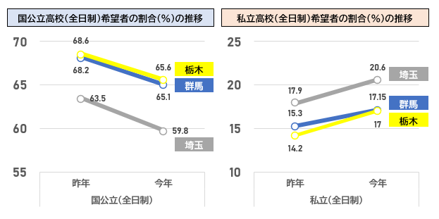 ※群馬・栃木は公立高校のみ。埼玉は国立高校含む。