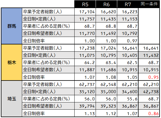 ※群馬・栃木は公立高校のみ。埼玉は国立高校含む。
