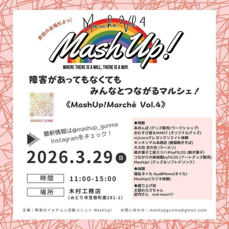 問い合わせはメール(mashupgunma■gmail.com)※■は@またはインスタグラム(@mashup_gunma)へ。