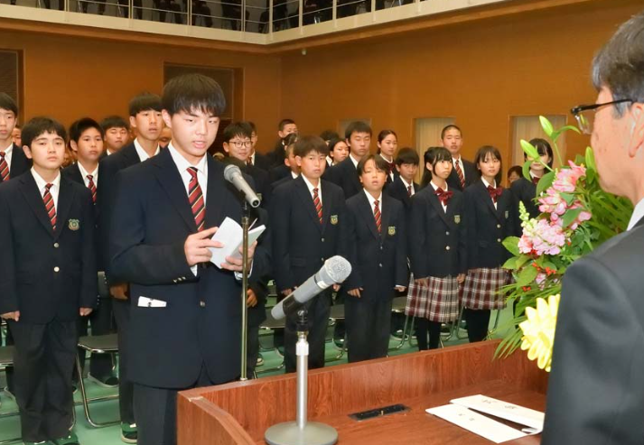 これに対して新入生の加藤叶大(かなた)さんは代表者宣誓で、「新たなスタートを切る1期生として入学できたことを心からうれしく誇りに思う。成長し続ける3年間にしていくことを誓う」と力強く宣言した。